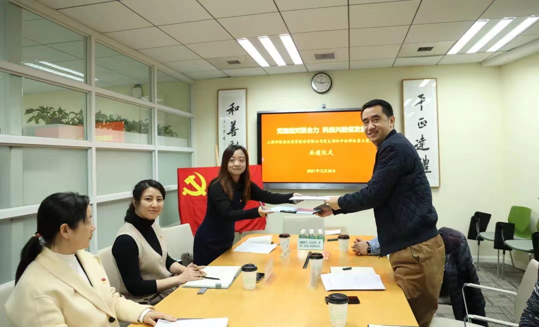 2021年12月24日,开云官方站官网·开云登陆入口-开云(中国)党支部与平和教育集团第三党支部举行主题为“党建结对聚合力,科技兴教促发展”的结对共建仪式。共话科教合作新前景。